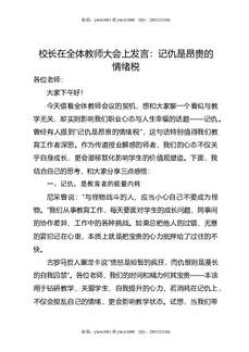 校长在全体教师大会上发言:记仇是昂贵的情绪税.doc