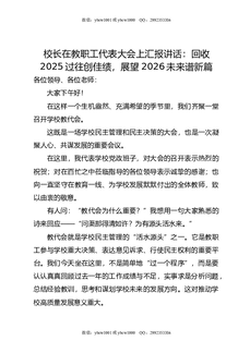校长在教职工代表大会上汇报讲话:回收2025过往创佳绩,展望2026未来谱新篇.doc