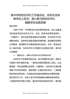 高中学校综合评价工作座谈会,校长在全体教师会上发言:凝心聚力抓综合评价,赋能学生全面发展.doc