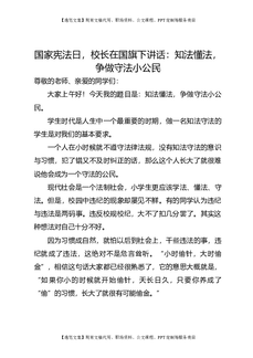 国家宪法日,校长在国旗下讲话:知法懂法,争做守法小公民.doc