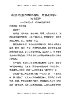 国家宪法日,校长在国旗下讲话:让我们加强法律知识学习,增强法律意识,与法同行.doc