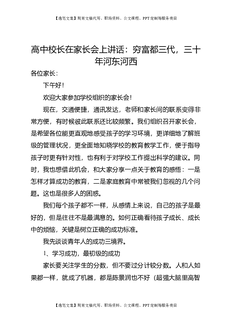 高中校长在家长会上讲话:穷富都三代,三十年河东河西.doc
