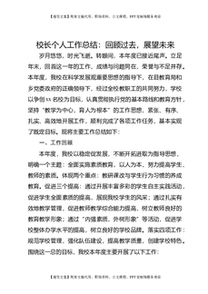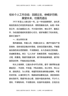 校长个人工作总结:回顾过去,峥嵘岁月稠;展望未来,任重而道远.doc