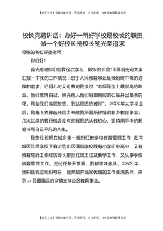 校长竞聘讲话:办好一所好学校是校长的职责,做一个好校长是校长的光荣追求.doc