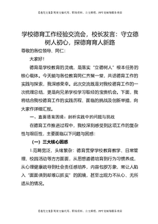 学校德育工作经验交流会,校长发言:守立德树人初心,探德育育人新路.doc
