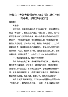校长在中考备考教师会议上的讲话:凝心冲刺新中考,护航学子逐梦行.doc