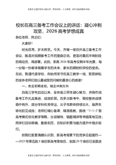 校长在高三备考工作会议上的讲话:凝心冲刺攻坚,2026高考梦想成真.doc