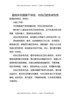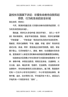 副校长在国旗下讲话:珍爱生命善待自我筑起思想、行为和生命的安全长城.doc
