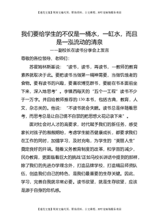 副校长在读书分享会上发言:我们要给学生的不仅是一桶水,一缸水,而且是一泓流动的清泉.doc