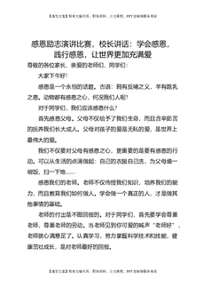 感恩励志演讲比赛,校长讲话:学会感恩,践行感恩,让世界更加充满爱.doc