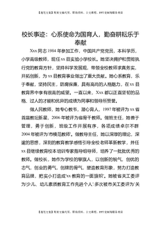 校长事迹:心系使命为国育人勤奋耕耘乐于奉献.doc