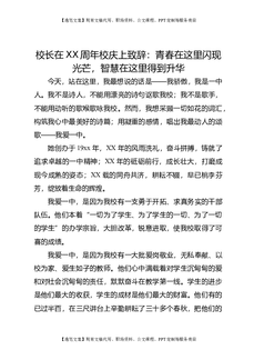 校长在XX周年校庆上致辞青春在这里闪现光芒,智慧在这里得到升华.doc