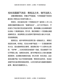 校长在国旗下讲话:尊宪法之本,做守法新人.docx