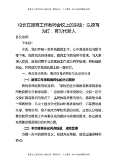 校长在德育工作教师会议上的讲话:以德育为灯,育时代新人.doc