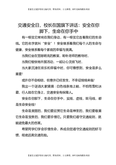 交通安全日,校长在国旗下讲话:安全在你脚下,生命在你手中.doc