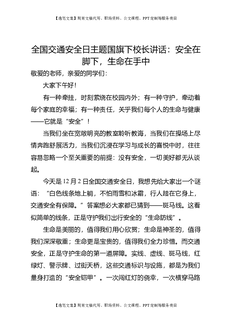 全国交通安全日主题国旗下校长讲话:安全在脚下,生命在手中.doc