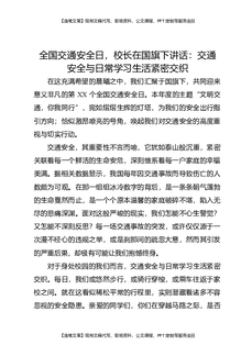 全国交通安全日,校长在国旗下讲话:交通安全与日常学习生活紧密交织.docx