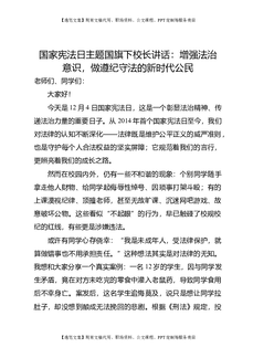 国家宪法日主题国旗下校长讲话:增强法治意识,做遵纪守法的新时代公民.doc