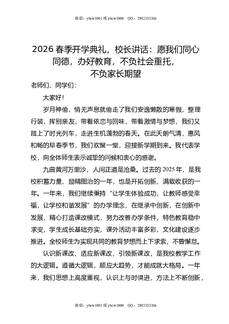 2026春季开学典礼,校长讲话:愿我们同心同德,办好教育,不负社会重托,不负家长期望.doc