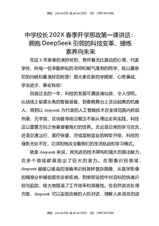 中学校长202X春季开学思政第一课讲话:拥抱DeepSeek引领的科技变革,锤炼素养向未来.docx