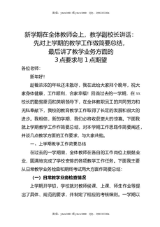 新学期在全体教师会上,教学副校长讲话:先对上学期的教学工作做简要总结,最后讲了教学业务方面的3点要求与1点期望.doc