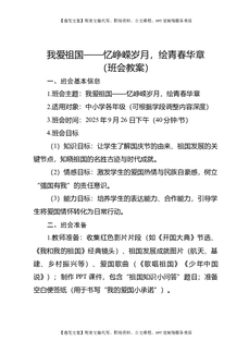我爱祖国——忆峥嵘岁月,绘青春华章(班会教案).docx