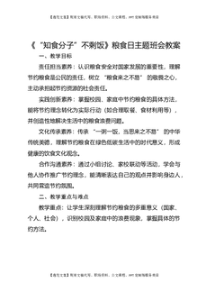 《“知食分子”不剩饭》粮食日主题班会教案.docx