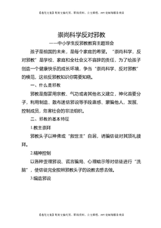 崇尚科学反对邪教——中小学生反邪教教育主题班会.doc