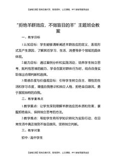 “拒绝羊群效应,不做盲目的羊”主题班会教案.docx