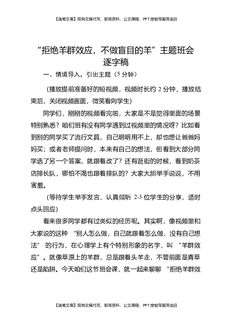 “拒绝羊群效应,不做盲目的羊”主题班会逐字稿.docx