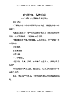 珍惜粮食,致敬耕耘,202X年世界粮食日主题班会.doc