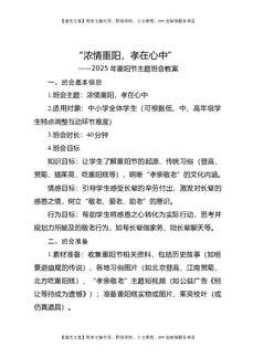 “浓情重阳,孝在心中”——2025年重阳节主题班会教案.docx