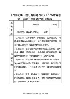 《向阳而生,遇见更好的自己》2026年春季第二学期主题班会教案(表格版).docx