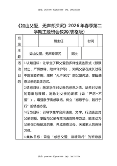 《如山父爱,无声却深沉》2026年春季第二学期主题班会教案(表格版).docx