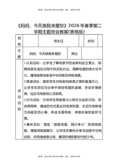《妈妈,今天换我来爱您》2026年春季第二学期主题班会教案(表格版).docx