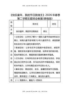 《快乐童年,我的节日我做主》2026年春季第二学期主题班会教案(表格版).docx