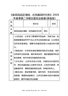 《梨花风起正清明,红色基因代代传》2026年春季第二学期主题班会教案(表格版).docx