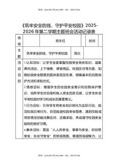 《筑牢安全防线,守护平安校园》2025-2026年第二学期主题班会活动记录表.docx