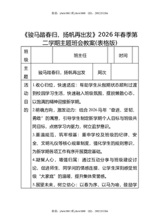 《骏马踏春归,扬帆再出发》2026年春季第二学期主题班会教案(表格版).docx