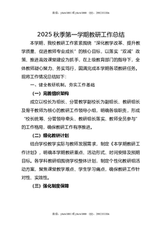 2025秋季第一学期教研工作总结.doc
