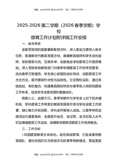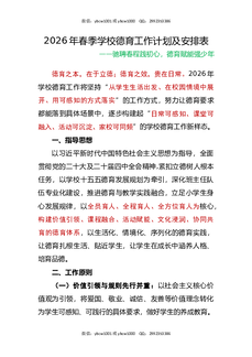 2025-2026第二学期(2026春季学期)学校德育工作计划附详细工作安排.doc
