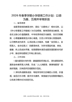 2026年春季学期小学德育工作计划:以德为基,五育并举育新苗.doc