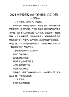 2026年春季学校德育工作计划:以习立德,以行润心.doc