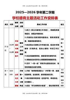 2025-2026学年第二学期学校德育主题活动工作安排表.docx