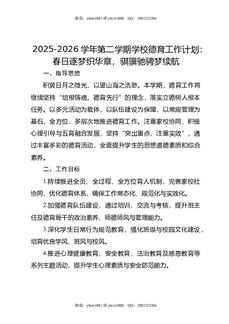 2025-2026学年第二学期学校德育工作计划:春日逐梦织华章,骐骥驰骋梦续航.doc
