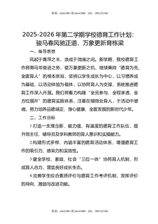 2025-2026学年第二学期德育工作计划——策马扬鞭奋进时,骐骥驰骋谱新篇.docx