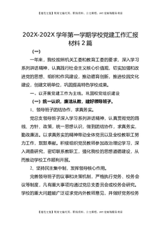 202X-202X学年第一学期学校党建工作汇报材料2篇.docx