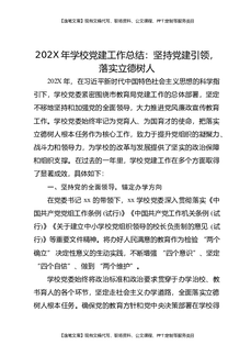 202X年学校党建工作总结:坚持党建引领,落实立德树人.docx