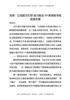 党课:以党建为引领奋力推动XX教育教学高质量发展.docx