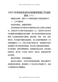 2025年学校党支部书记抓基层党建工作述职报告(二).doc